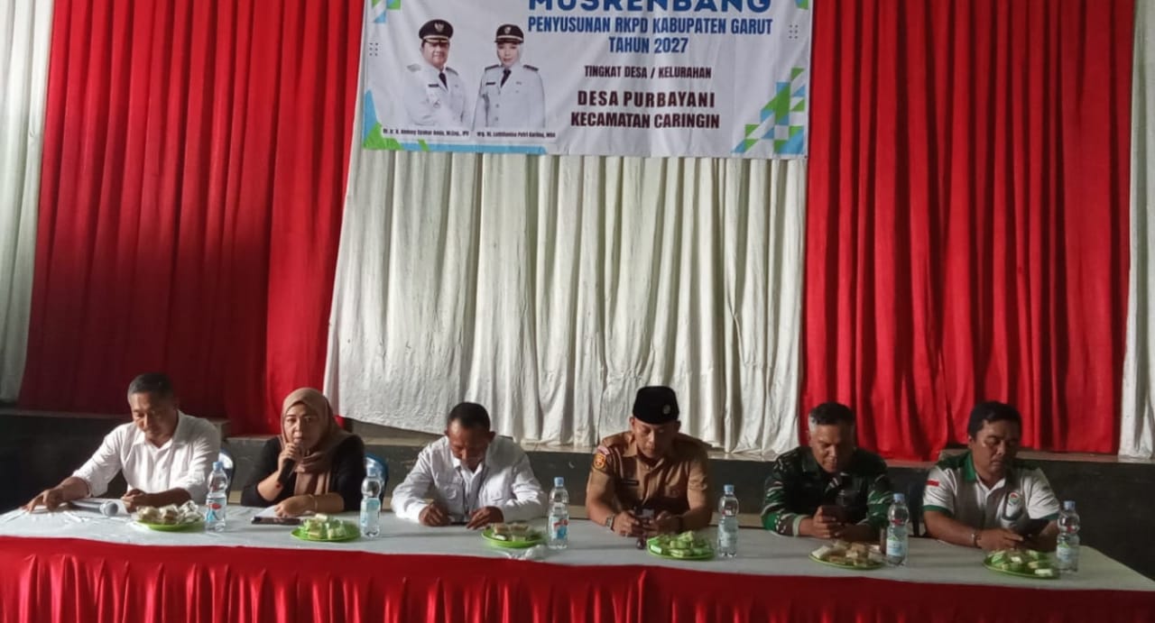 Seputar Jabar Garut | Pemerintah Desa Purbayani menyelenggarakan Musyawarah Desa Penetapan RKPDes Tahun 2026 dan Daftar Usulan RKP Tahun 2027 sebagai bagian dari siklus perencanaan pembangunan desa yang partisipatif dan transparan. Kegiatan ini dilaksanakan di GOR Desa dan dihadiri oleh unsur Badan Permusyawaratan Desa (BPD), Perangkat Desa, RT, RW, Tokoh Masyarakat, Tokoh Agama, Tokoh Pemuda, Tim Penggerak PKK, serta Forkopincam Kecamatan Caringin.